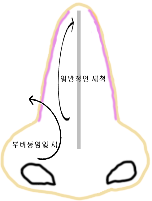 그 이유는 부비동 세척을 위해서는 부비동 쪽으로