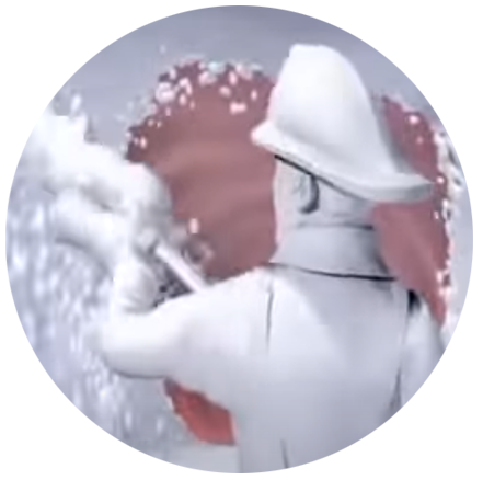 개비스콘 광고 속에 소방관이 흩뿌리는 알긴산은