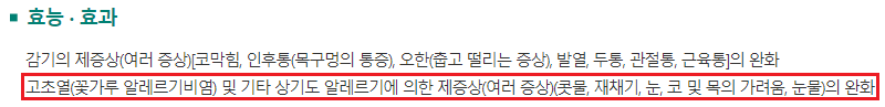 알레르기 증상이라는 문구가 추가로 적혀있죠