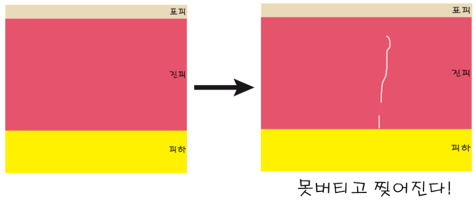 일정 한계를 넘어서면 피부 안 쪽의 진피가 찢어져버려요!